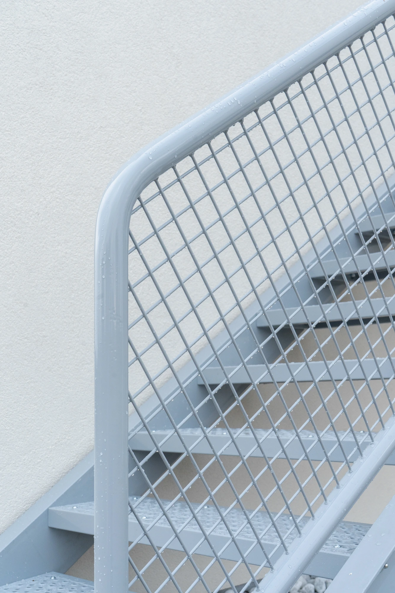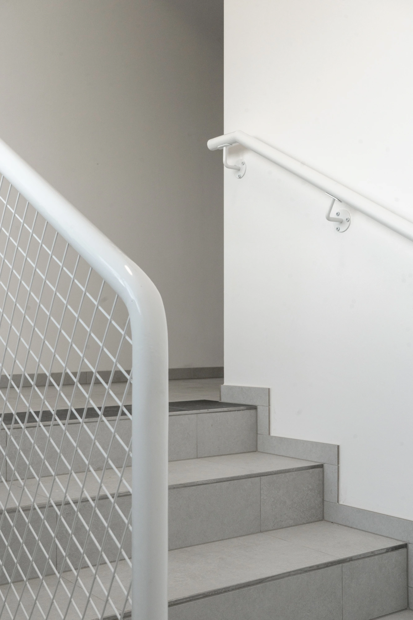 předmětů, zábradlí jsou zaoblená s ocelovými výplety a průhledy