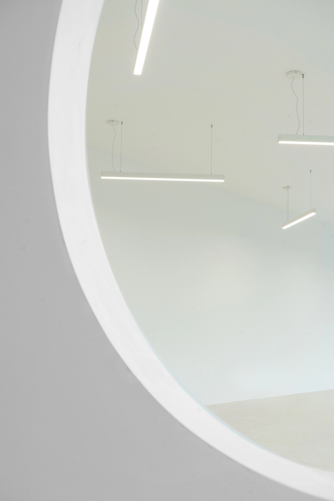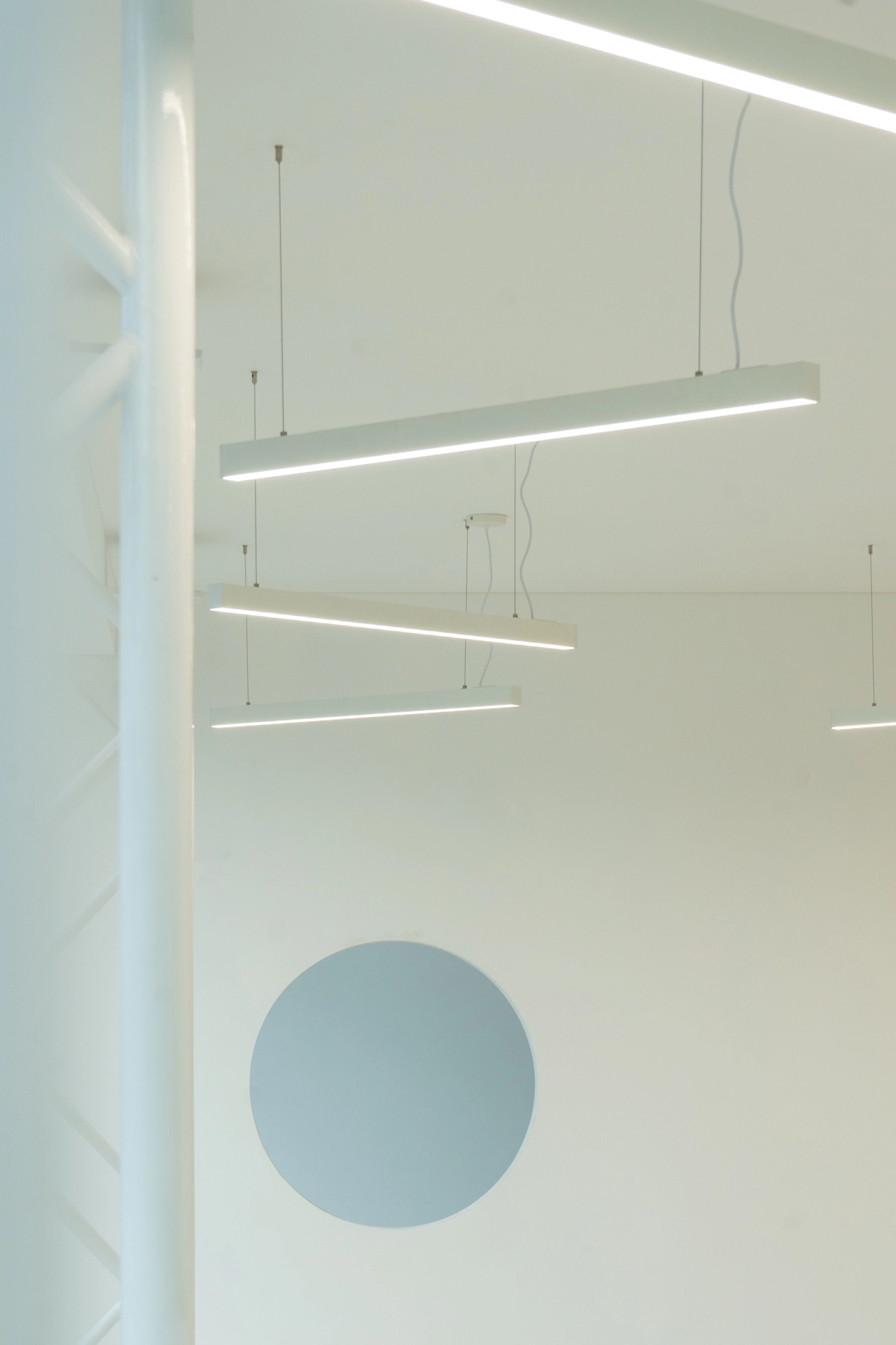 průmyslová stropní světla umístěna do křížů, sociální zázemí