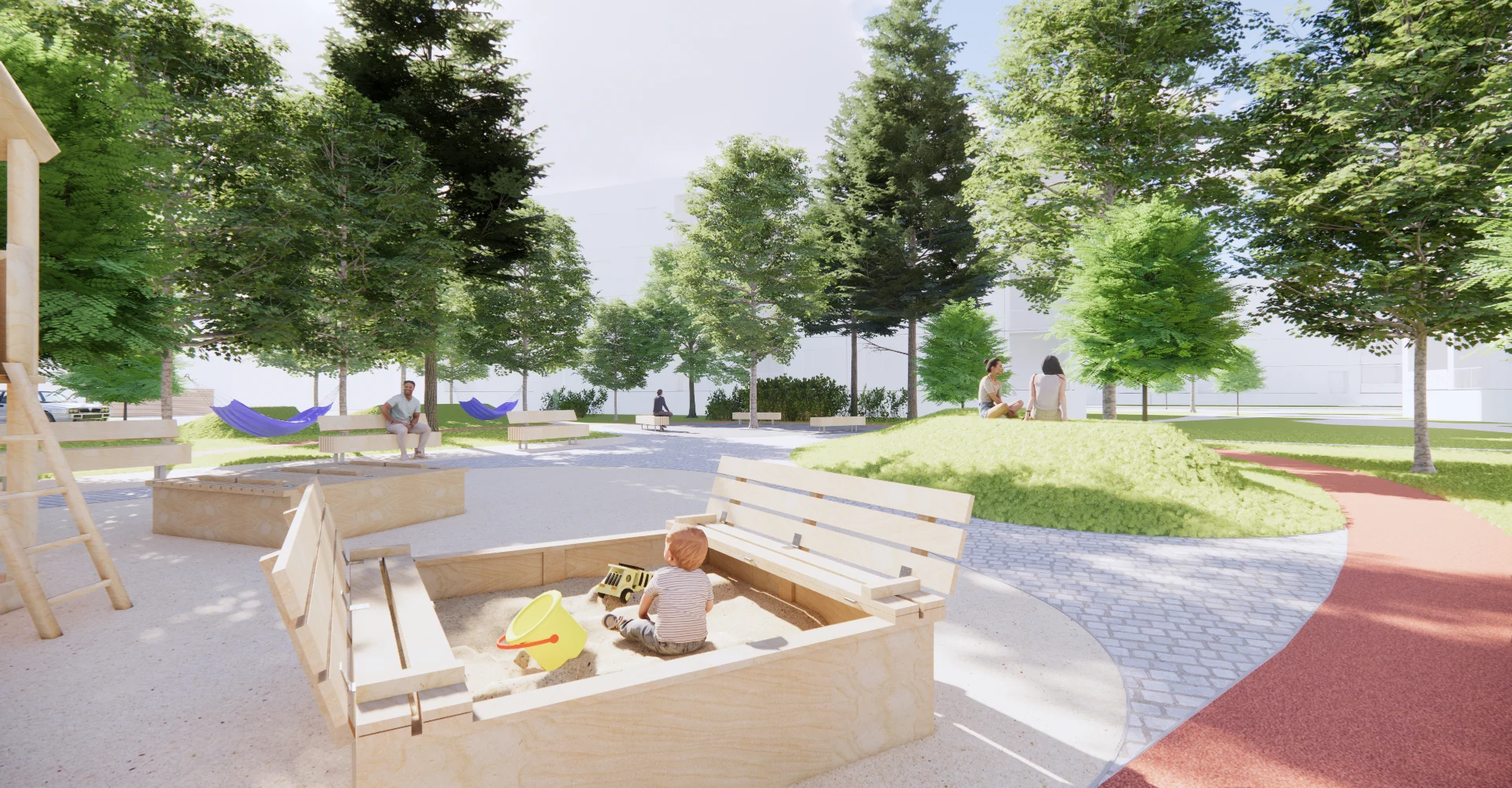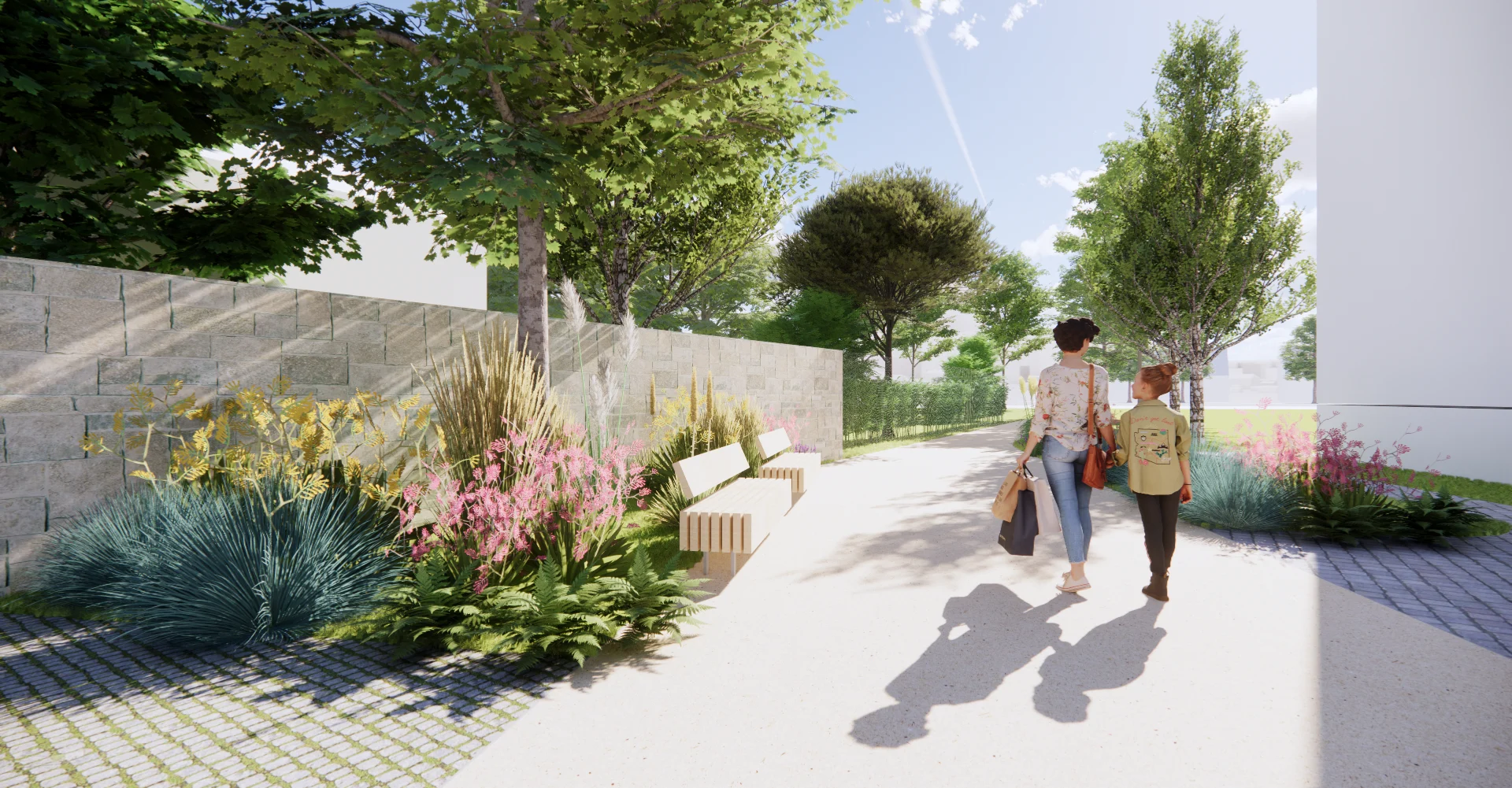 širokou škálou povrchů, zeleně a se členěním ploch tak, aby byl prostor