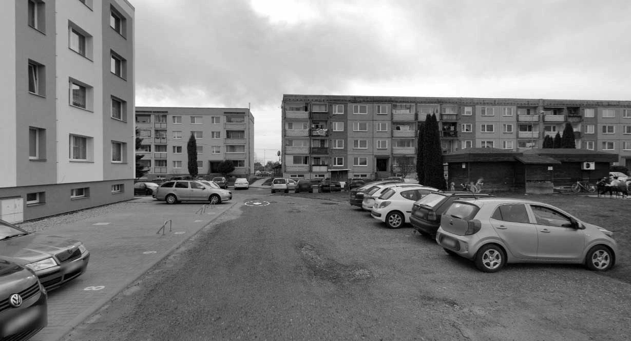 nedostatečné parkovací plochy, dožité pěší komunikace, chybějící